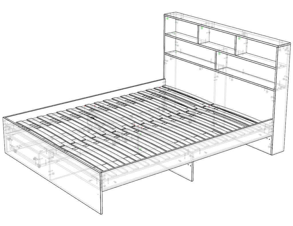 В кровать встроен выдвижной полновыкатной ящик на выкатных роликах.