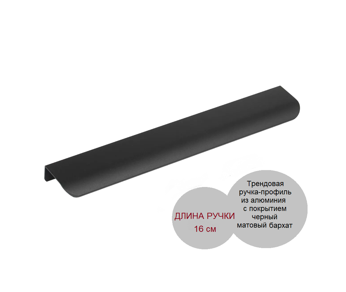 Трендовые ручки-профиль из алюминия с отделкой черный матовый бархат. Длина ручки 16 см