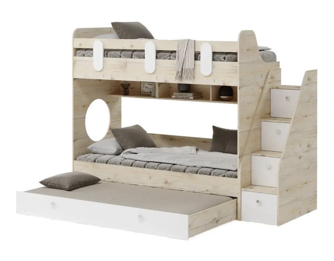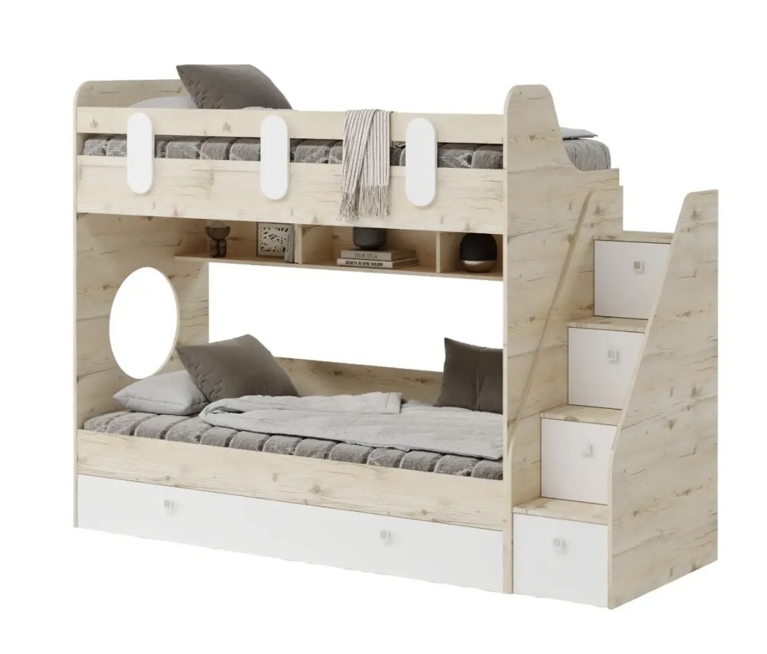 Вместо них - цельный и прочный настил из ЛДСП, который выдерживает сверхвысокую нагрузку и позволяет расположиться даже взрослому с ребенком.