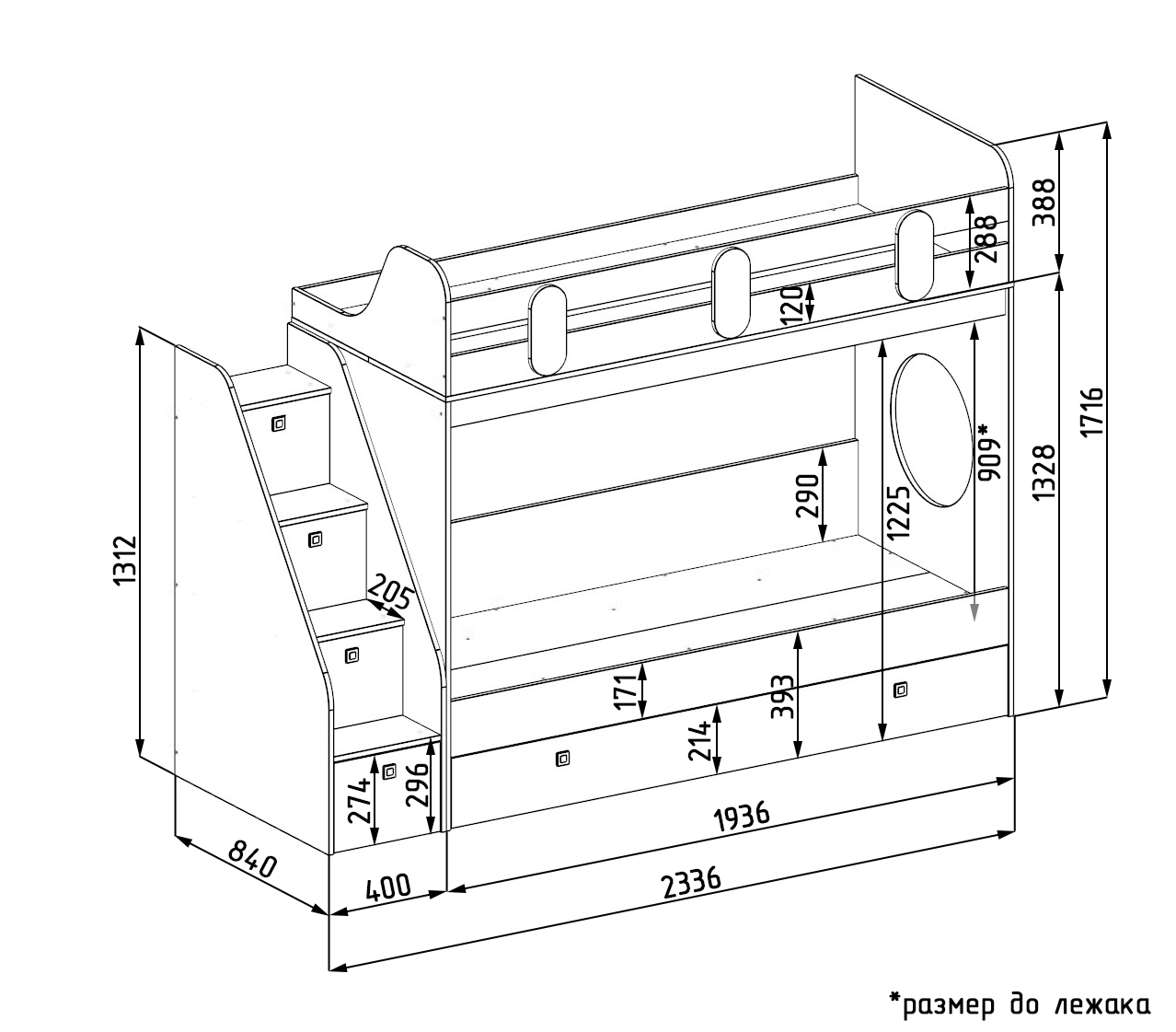верхнее и нижнее спальное место 190 х 80 см - нагрузка на каждое спальное место до 150 кг