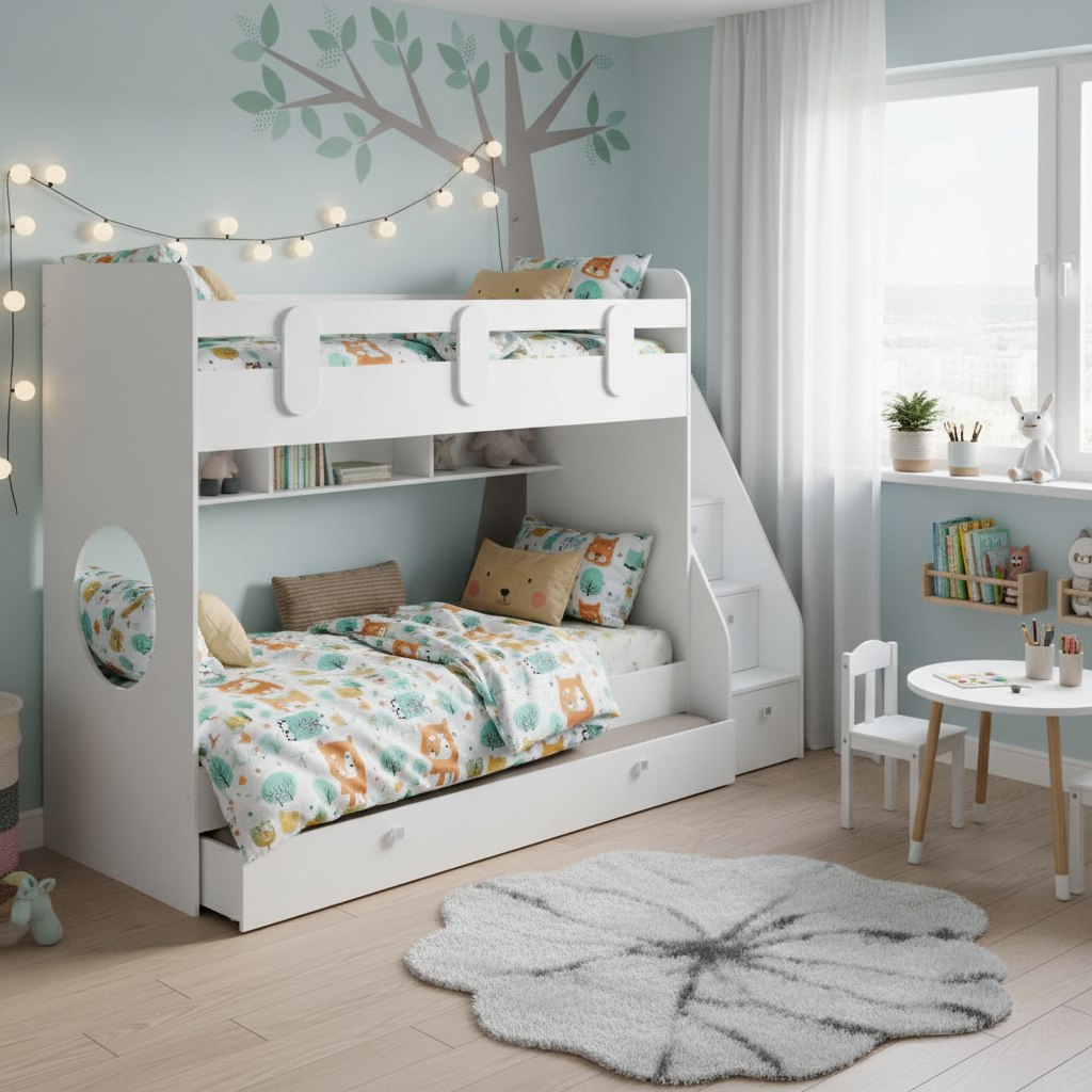 Двухъярусная кровать Фортуна-3 с удобной, безопасной лестницей и комфортной высотой.
