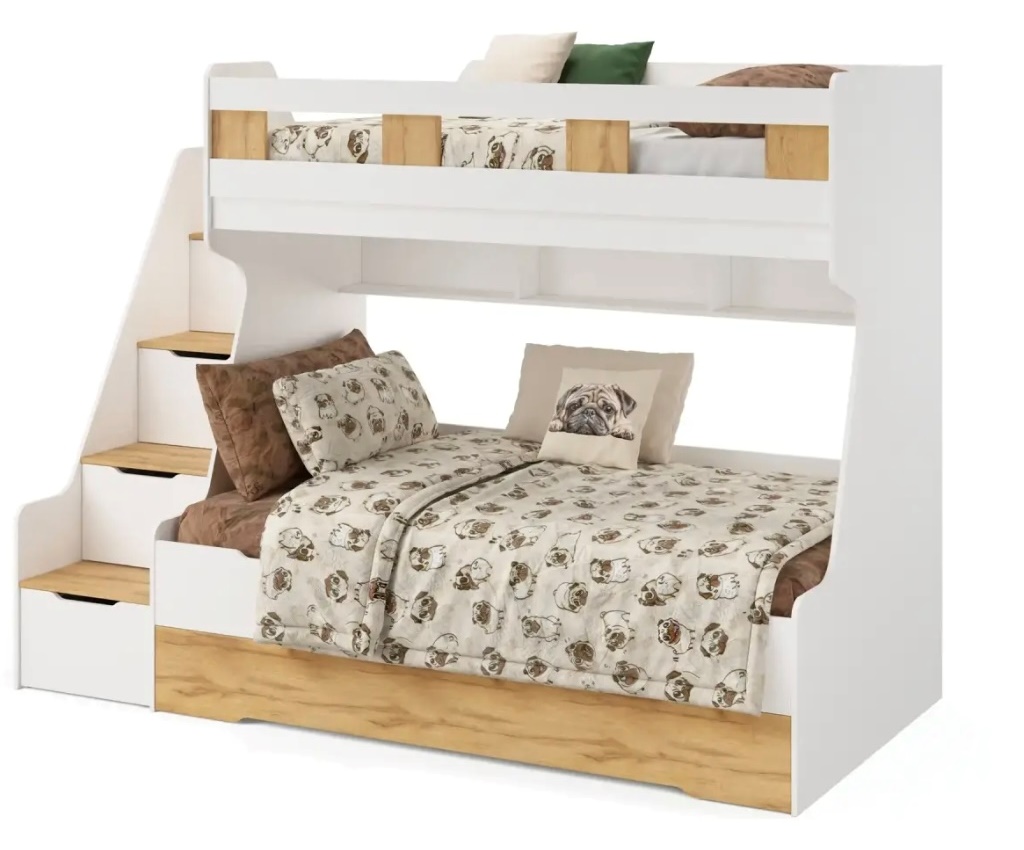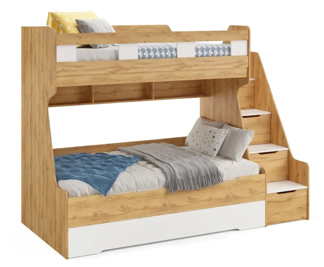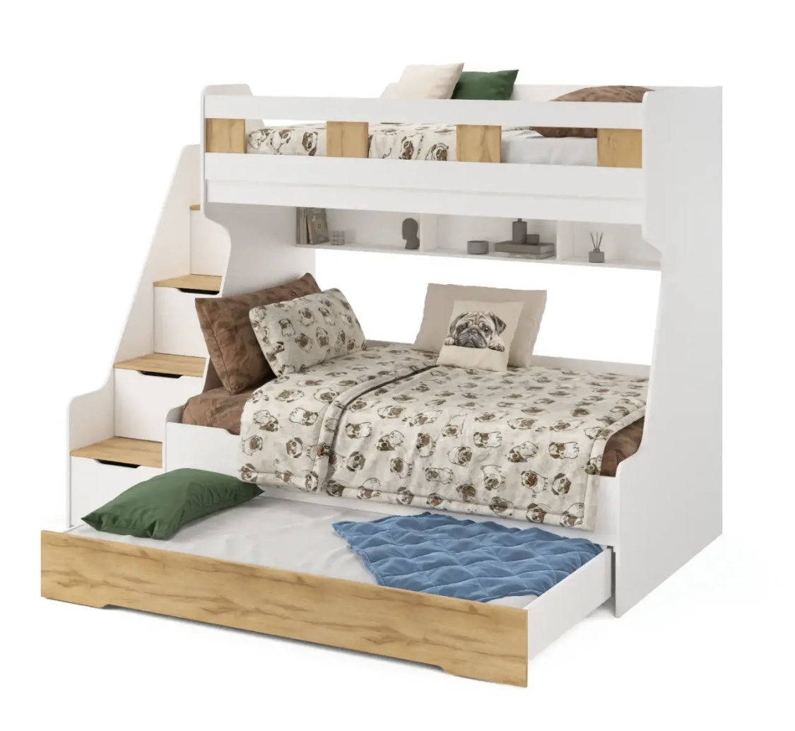 - Максимальная функциональность - два яруса обеспечивают удобство и экономию пространства, а дополнительное спальное место легко выдвигается, когда это необходимо.