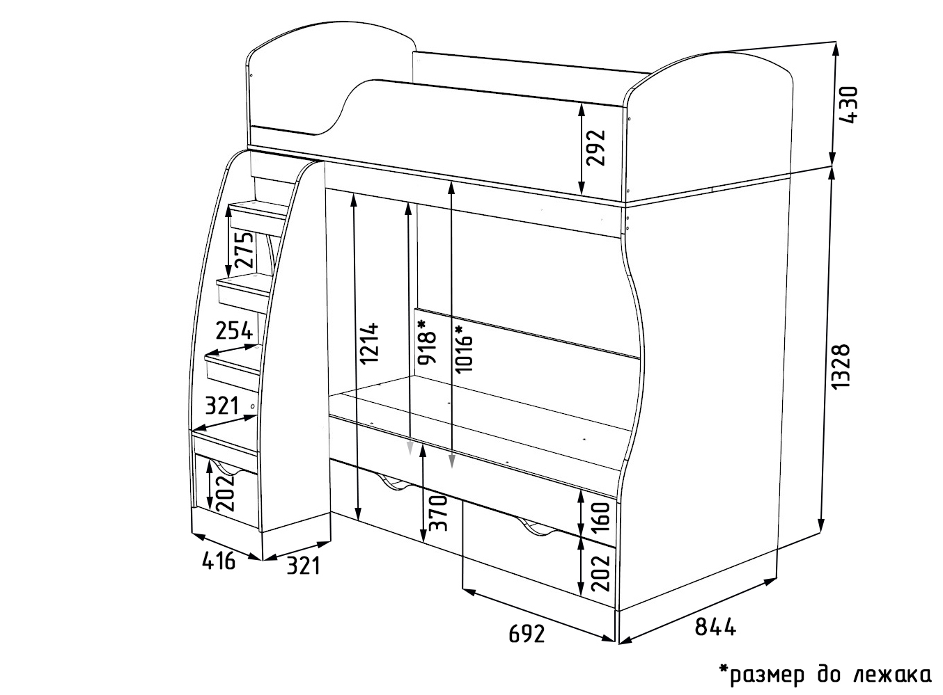 * Дополнительно к нижней кровати можно приобрести съемный бортик-ограничитель