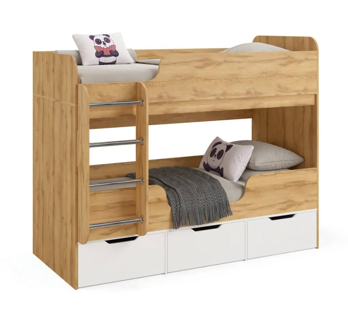 Компактная двухъярусная кровать Малыши Двойняшки создана специально для небольших помещений.