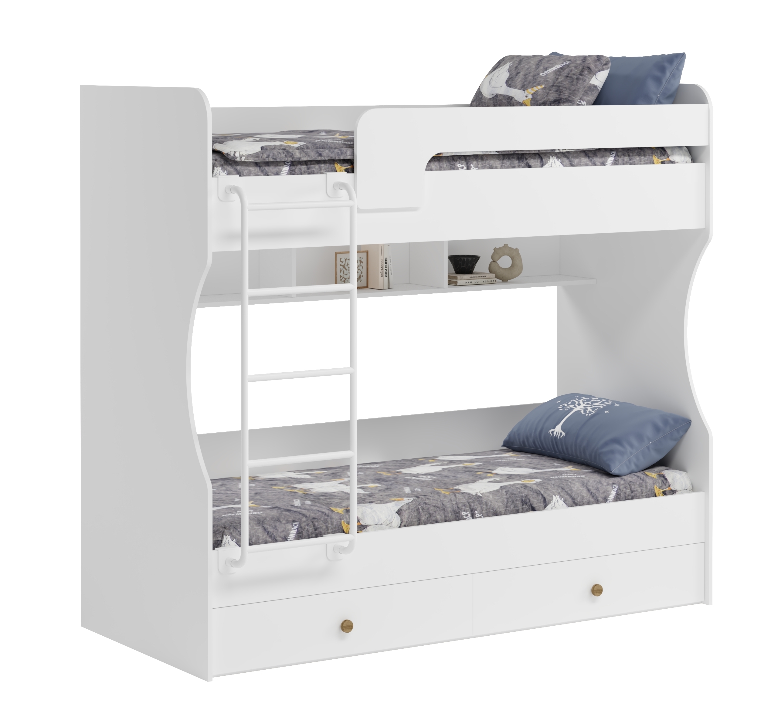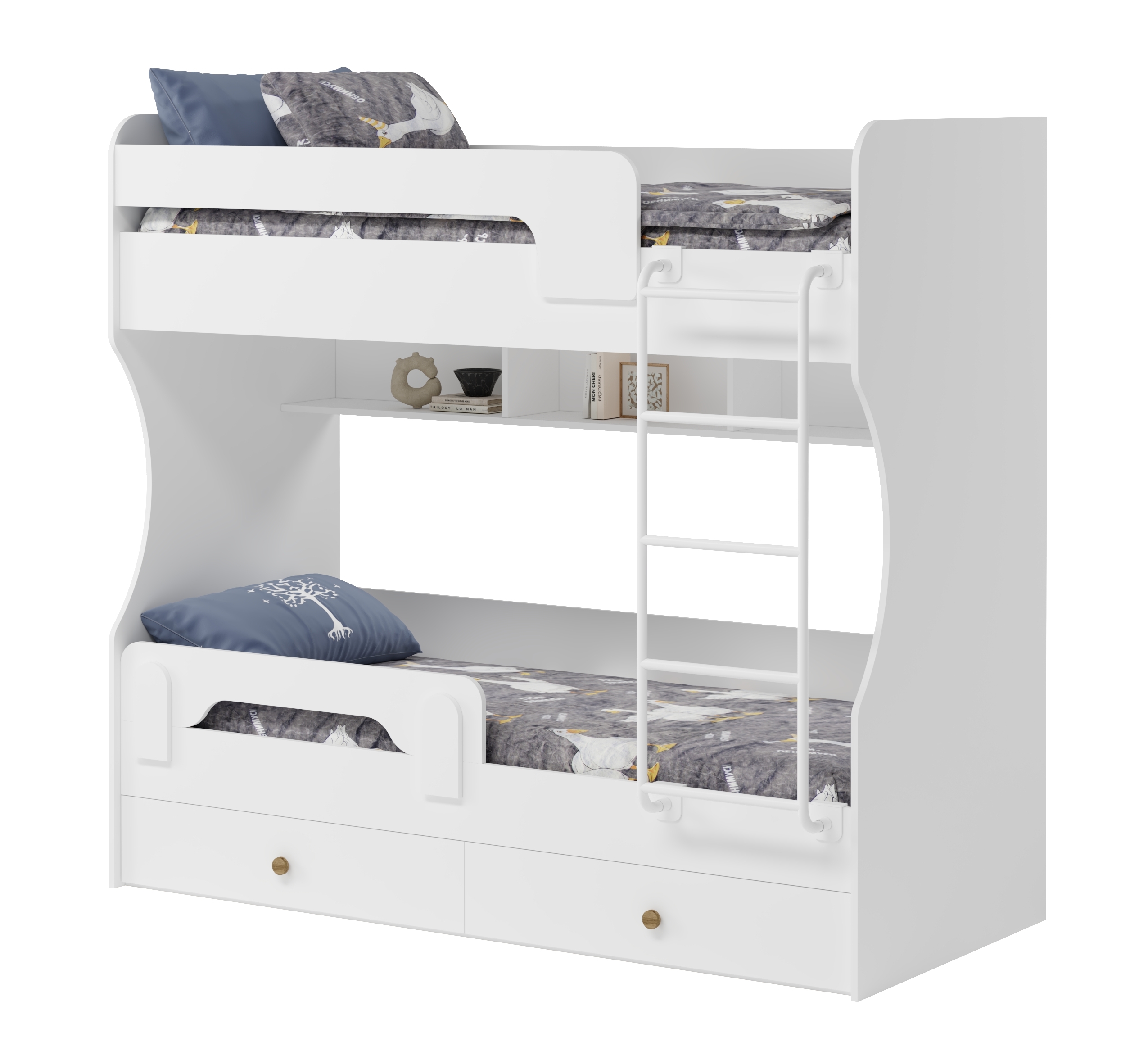Двухъярусная кровать в белом цвете идеальна для любых интерьеров.