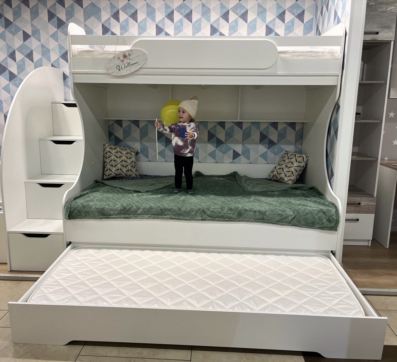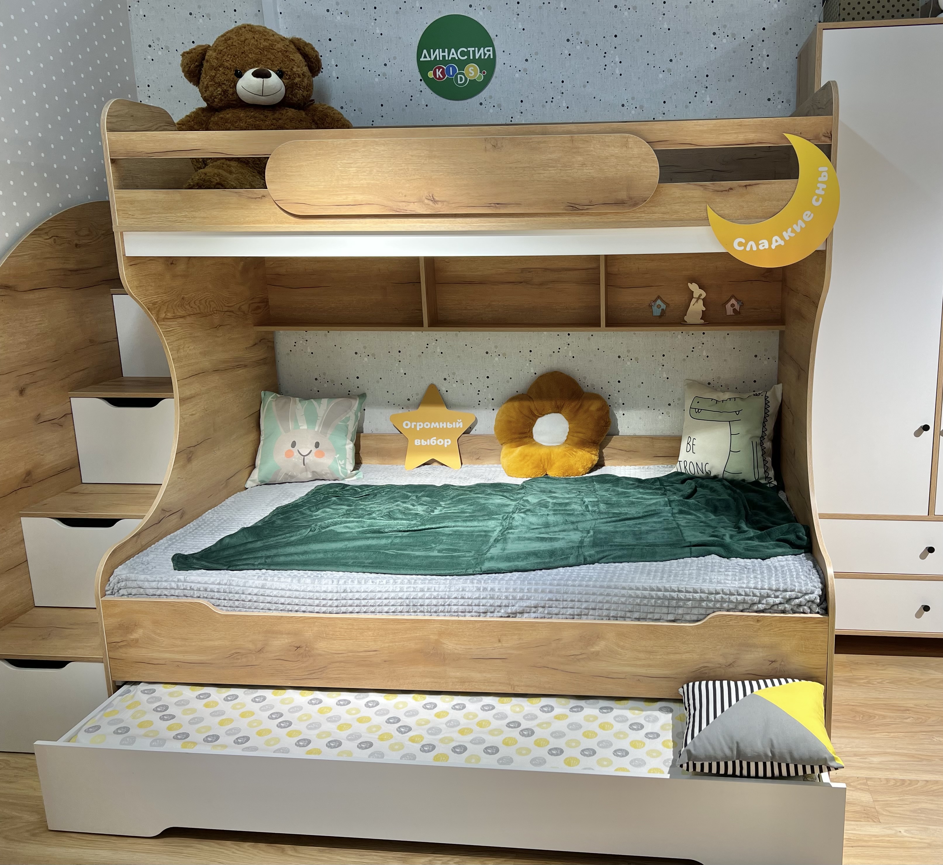 Увеличенное, просторное нижнее спальное место позволяет комфортно разместиться ребенку вместе со взрослым.