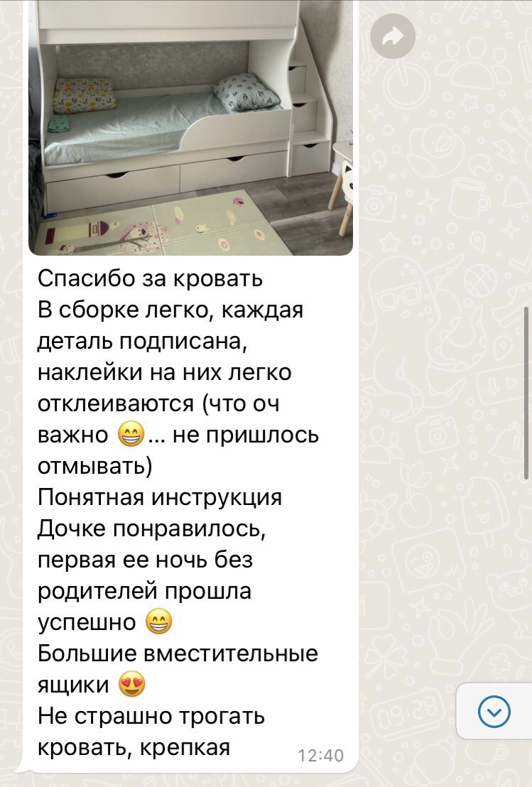 * Основание кровати – прочный настил ЛДСП (НЕ РЕЙКИ!), который позволяет ребенку спать на ровной поверхности, что важно для детской спины.