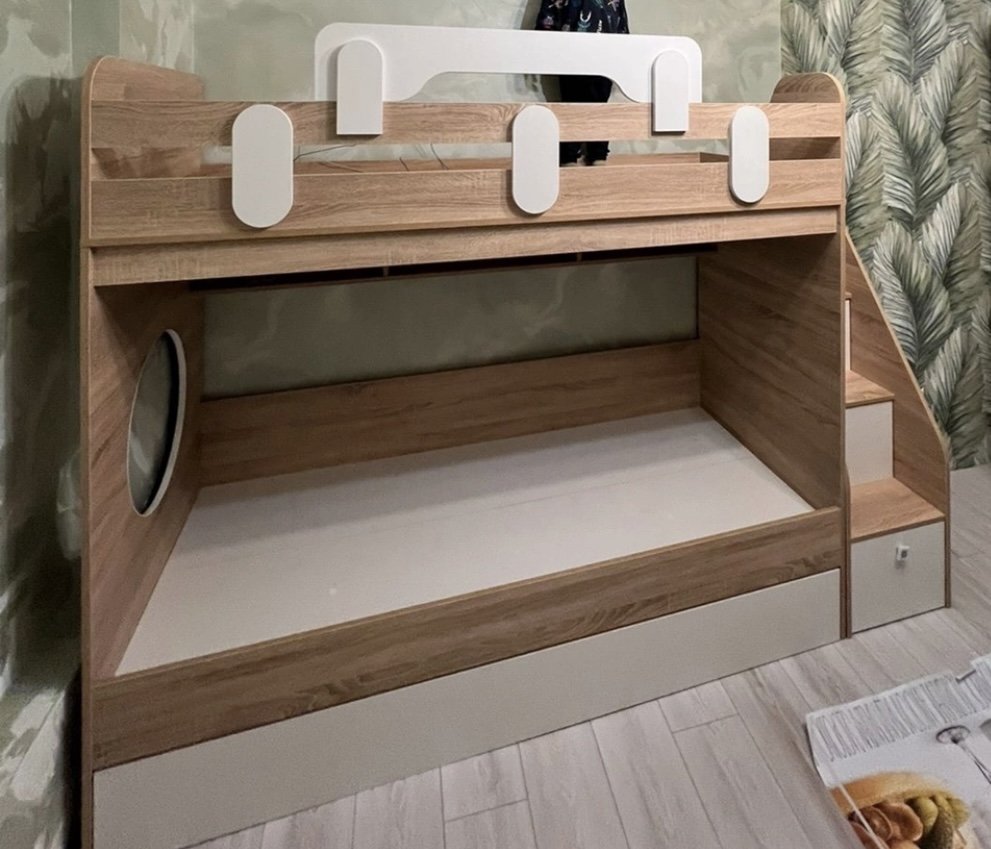 Вместо них - цельный и прочный настил из ЛДСП, который выдерживает сверхвысокую нагрузку и позволяет расположиться даже взрослому с ребенком.