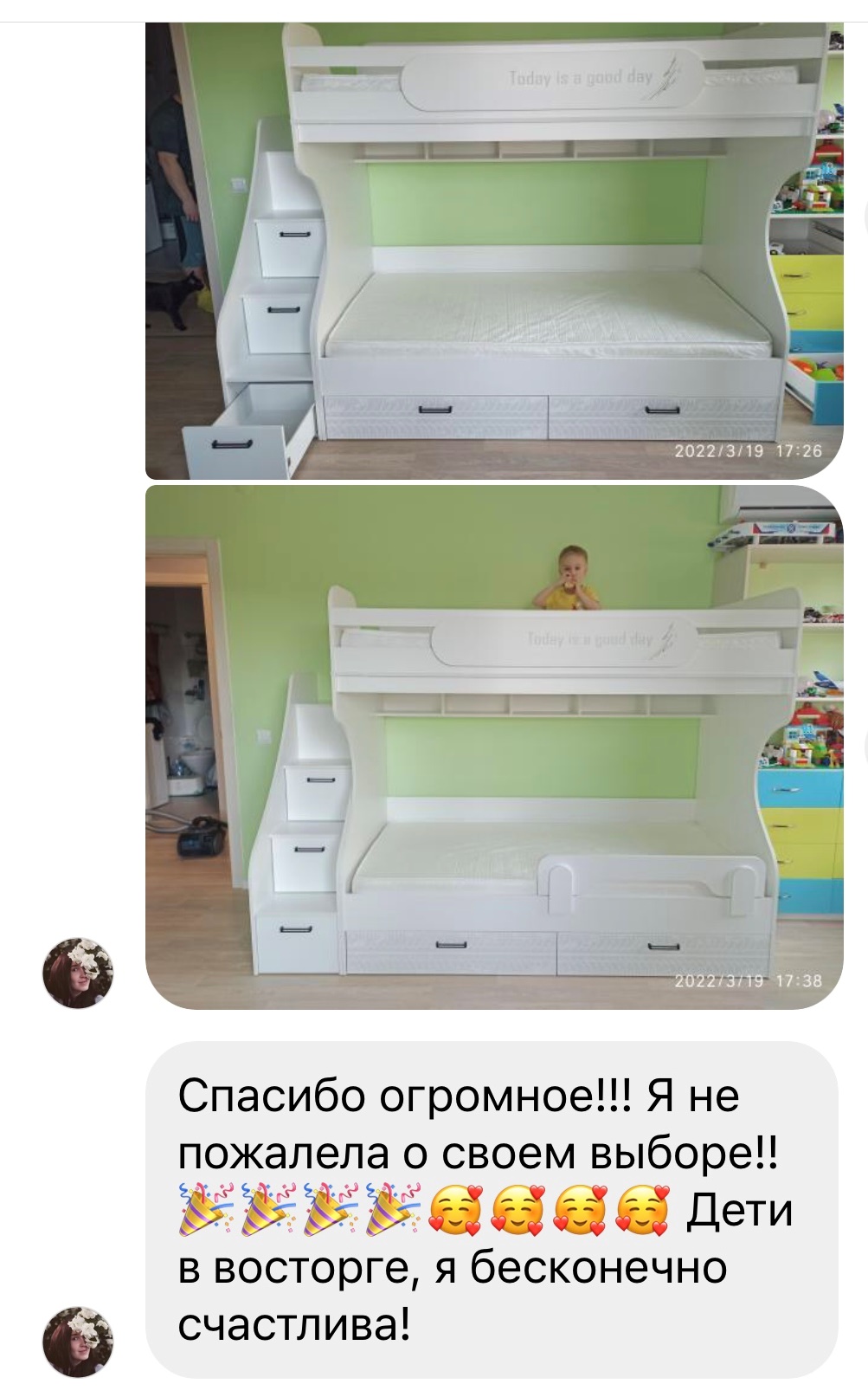 Вместо них - цельный и прочный настил из ЛДСП, который выдерживает сверхвысокую нагрузку и позволяет расположиться даже взрослому с ребенком.