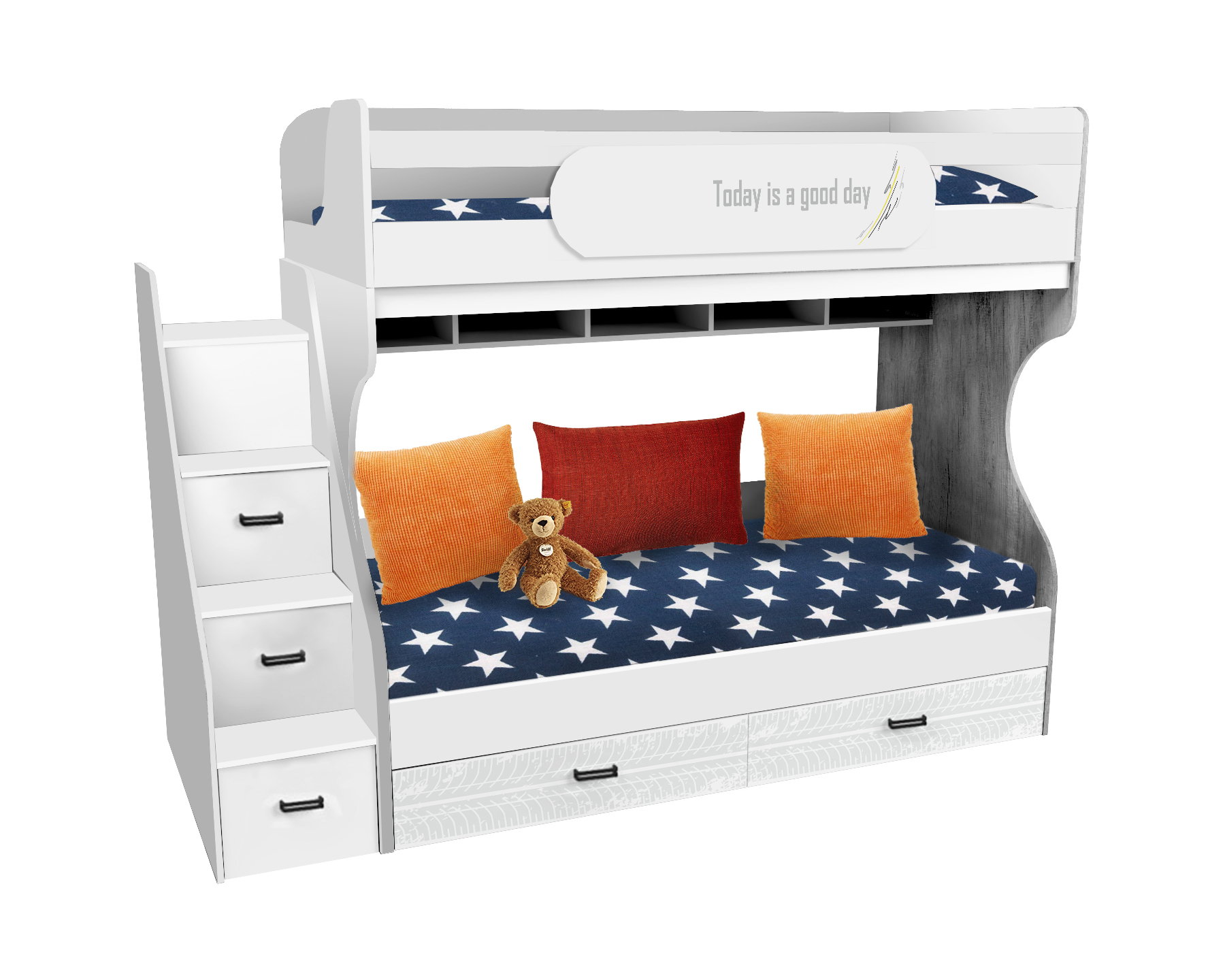 Кровать двухъярусная коллекции мебели Престиж с удобной лестницей и комфортной высотой.