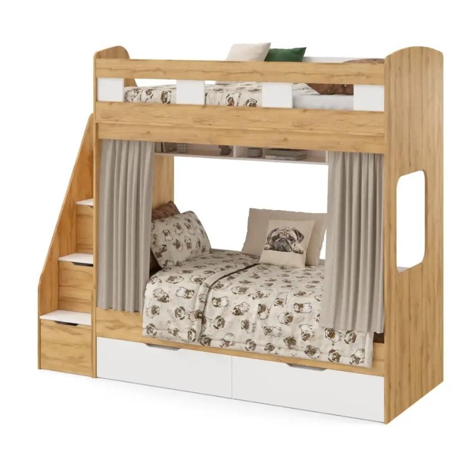 Прочная, стильная двухъярусная кровать Твинс с удобной лестницей, безопасным высоким бортиком и ящиками для хранения.