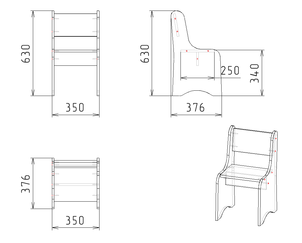 Габариты стула: высота 630, глубина 376, ширина 350 мм