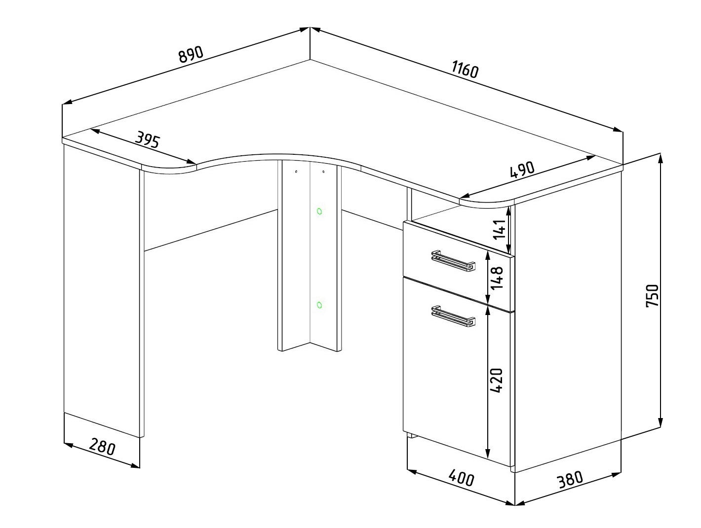 Габариты: ширина 1160 х высота 750 х глубина 890 мм