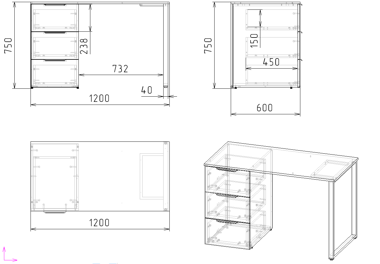 Выдвижные ящики столов с доводчиками. Дно ящиков прочное - выполнено из ЛДСП 16 мм (не ДВП!)