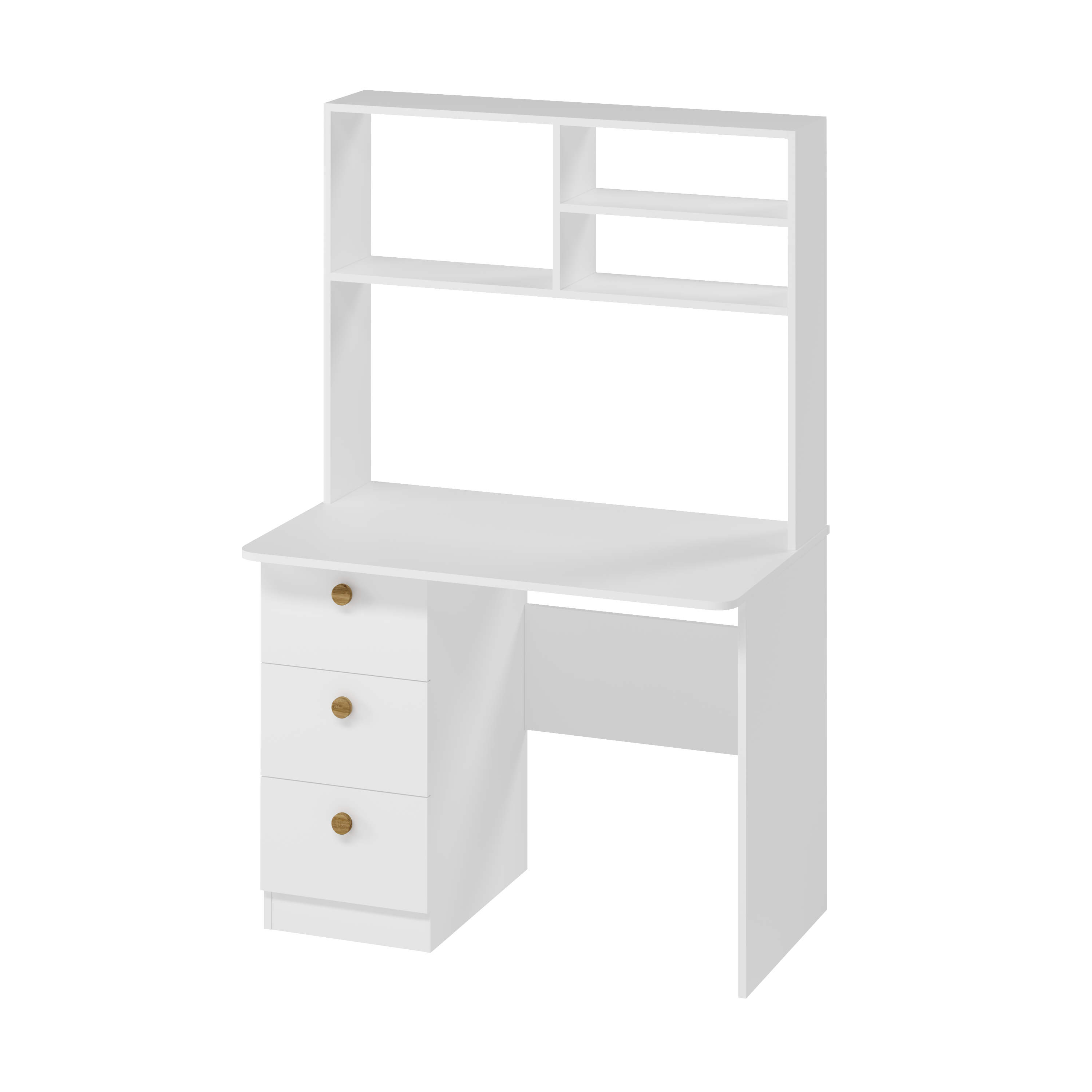 - Компактность – даже в небольшой комнате такой стол формирует полноценную учебную зону без ущерба для остального пространства.