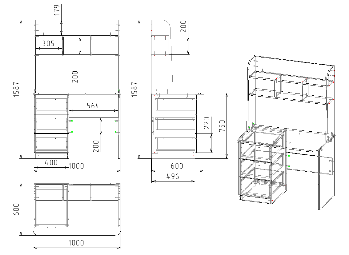 Габариты: ширина 1000 х высота 1550 х глубина 600 мм