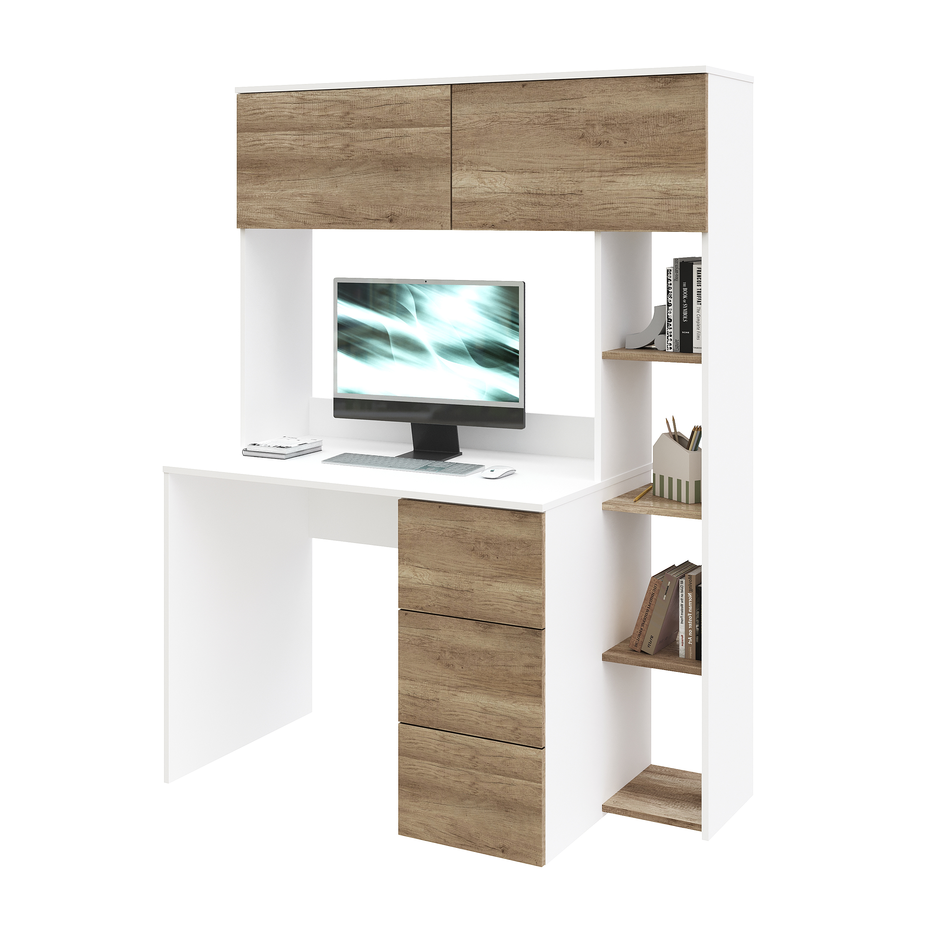 Просторная поверхность, удобные полки и ящики позволят разместить учебники, книги и канцелярию.