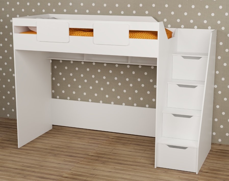 Мебель выполнена из сертифицированного, качественного, экологически чистого ЛДСП класса Е0,5 в белом цвете.