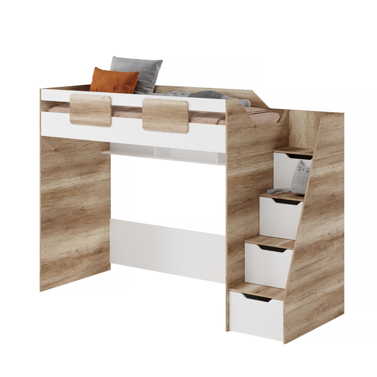 В лестницу встроены выдвижные ящики для игрушек - удобно и практично.