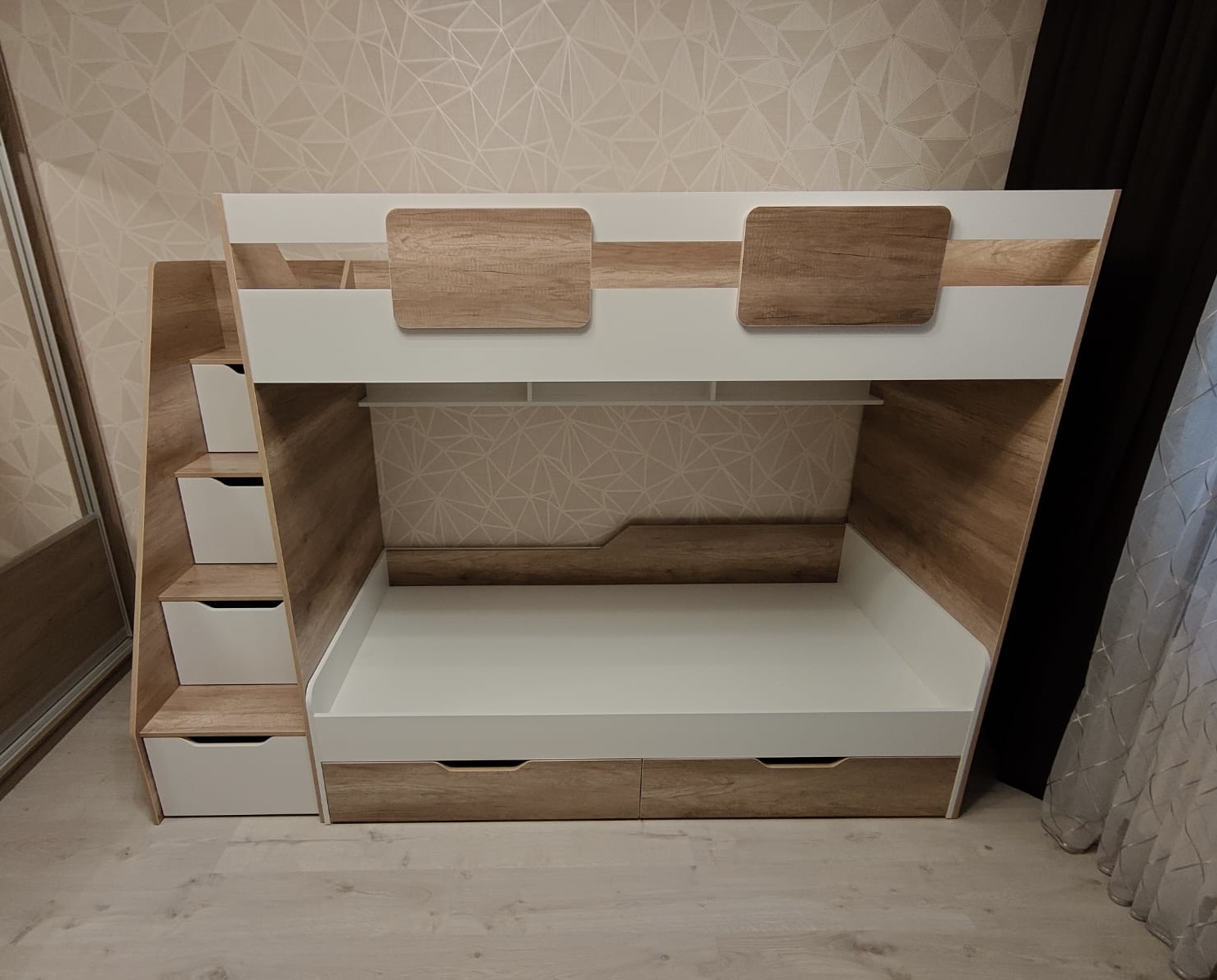 Основание кровати – прочный настил ЛДСП, который позволяет ребенку спать на ровной поверхности, что важно для детской спины.