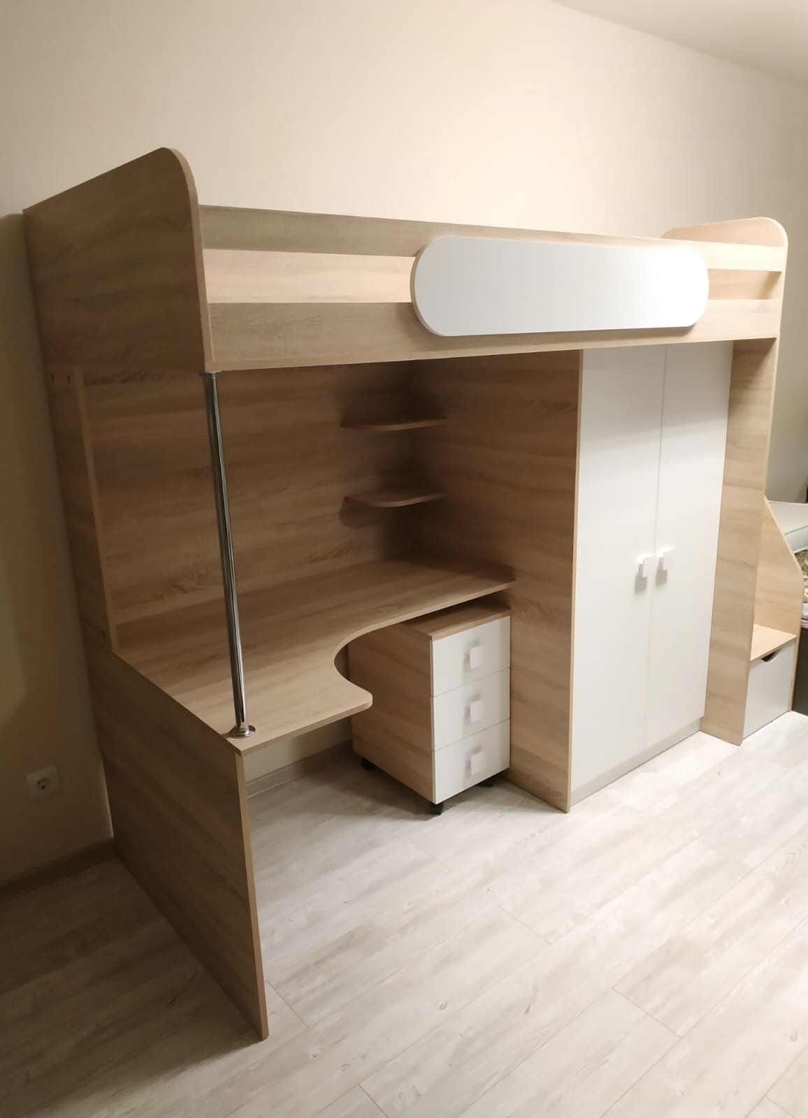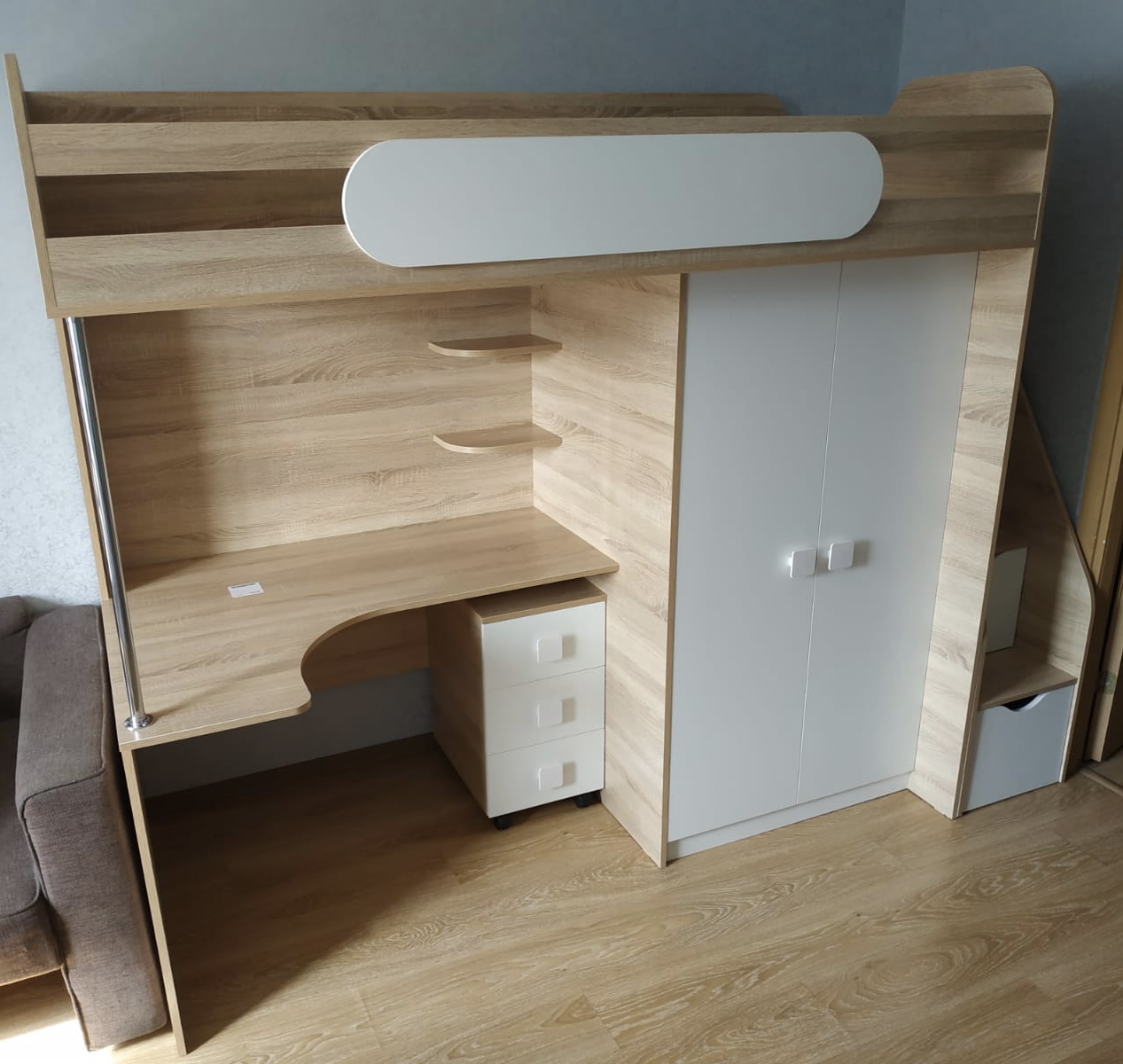 Основание кровати – прочный настил ЛДСП, который позволяет ребенку спать на ровной поверхности, что важно для детской спины. Прочное основание не скрипит и не сломается при играх. Отлично подходит как для пружинных, так и беспружинных матрасов.