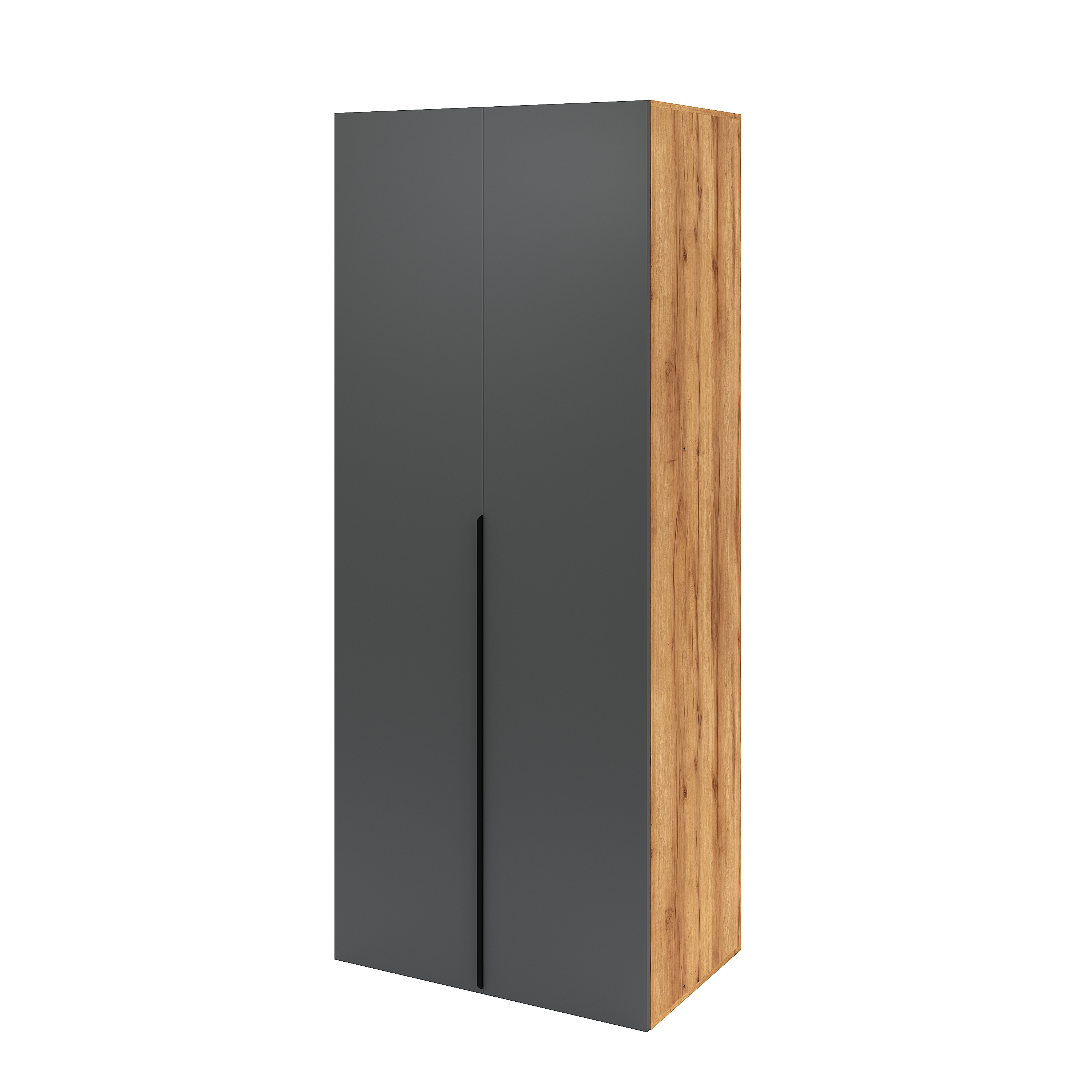 Распашной двухстворчатый шкаф + переходной стеллаж + угловой шкаф + пенал коллекции Брайт Графит