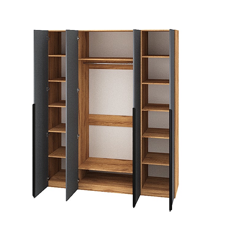 Четырехдверный распашной шкаф коллекции мебели Брайт Графит - функциональное решение для хранения одежды, обуви и аксессуаров.