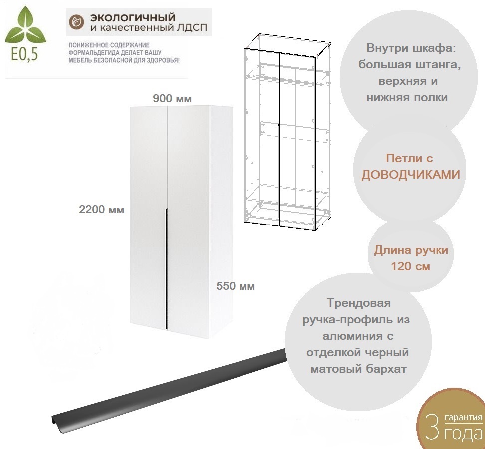 Материал: сертифицированное, качественное, экологически чистое ЛДСП Е0,5 в белом цвете.