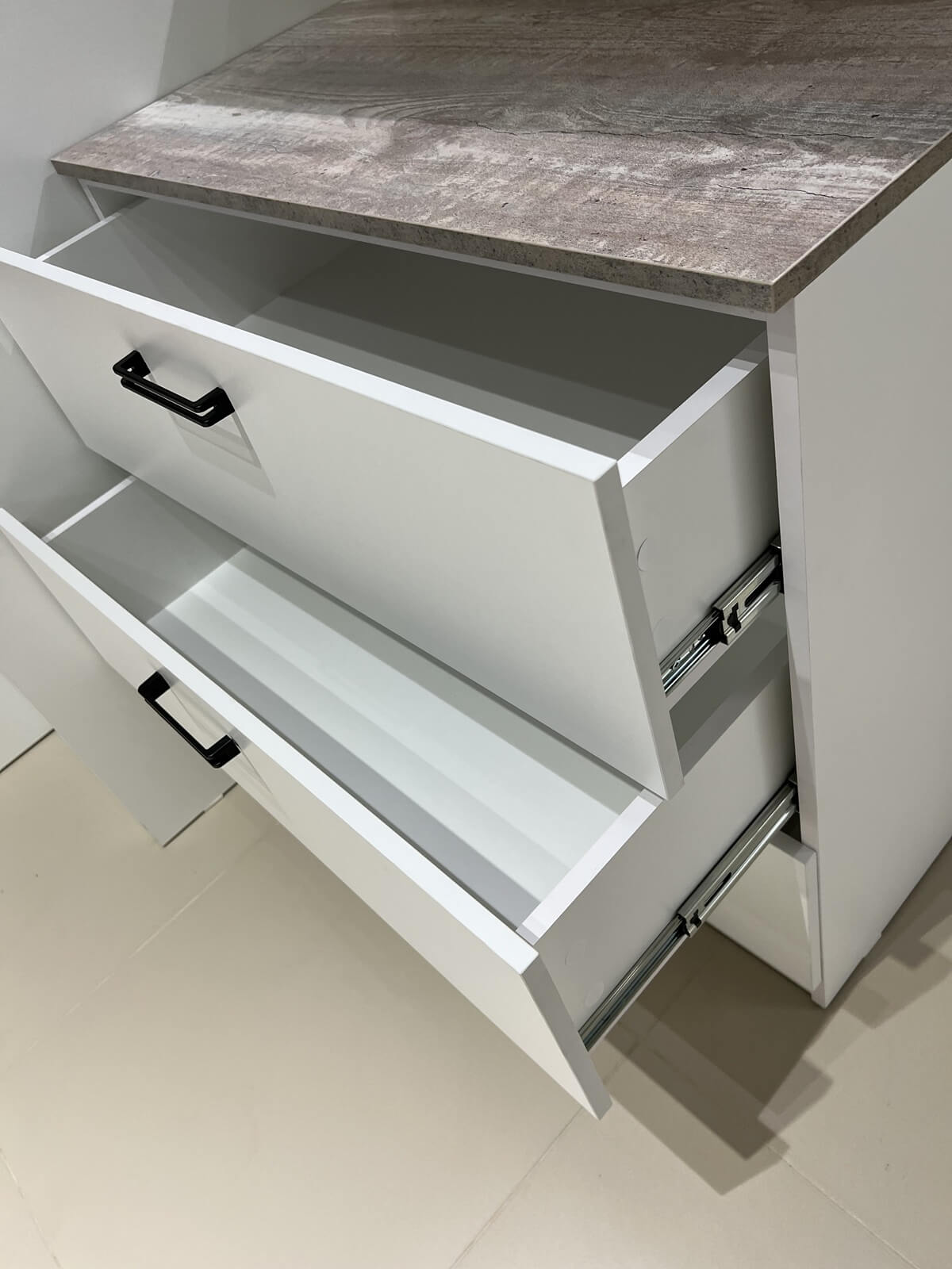 Доводчики. Дно выдвижных ящиков прочное - выполнено из ЛДСП 16 мм (не ДВП!) |