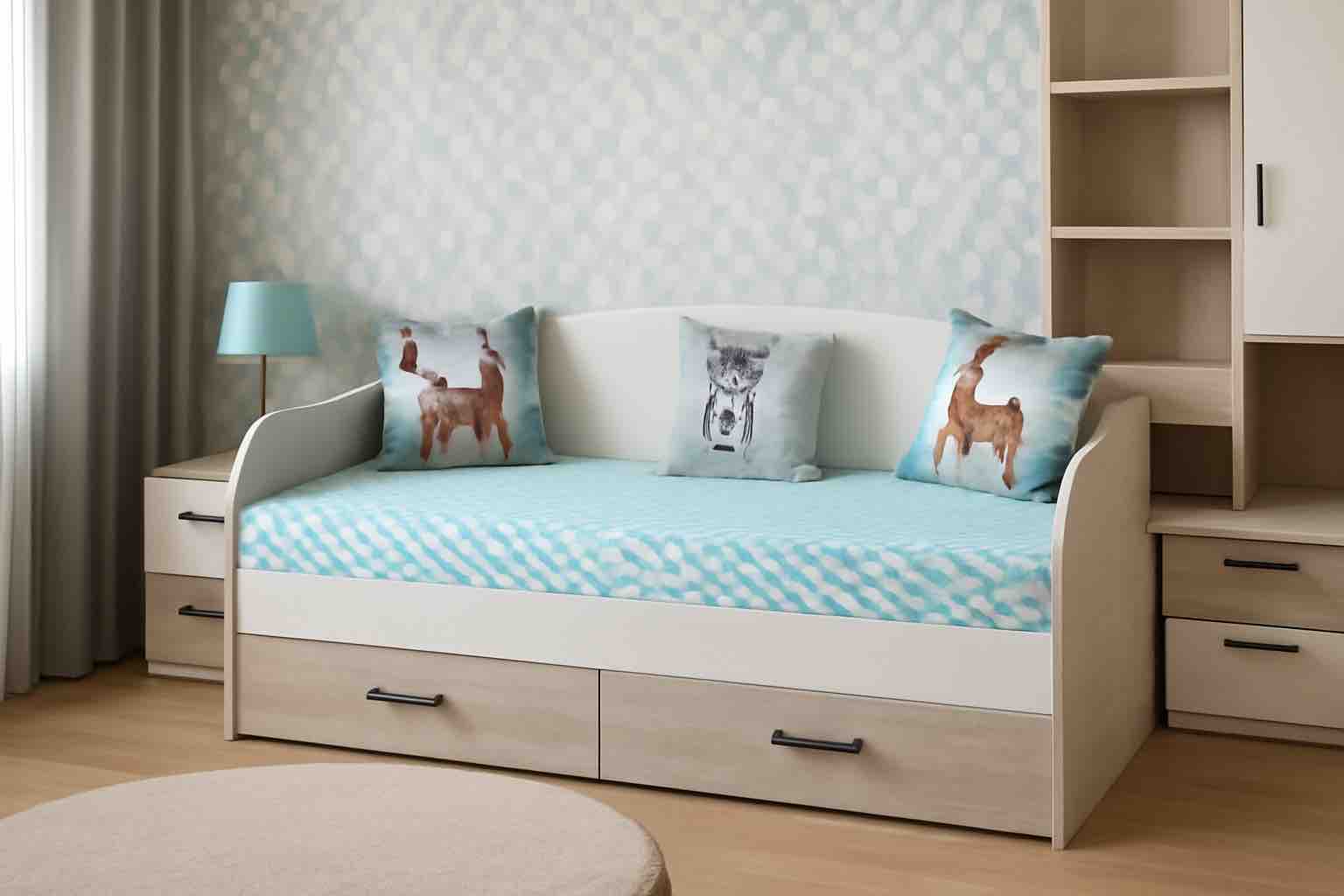Данная модель кровати выполнена в современном дизайне, превосходно дополнит интерьер детской комнаты.