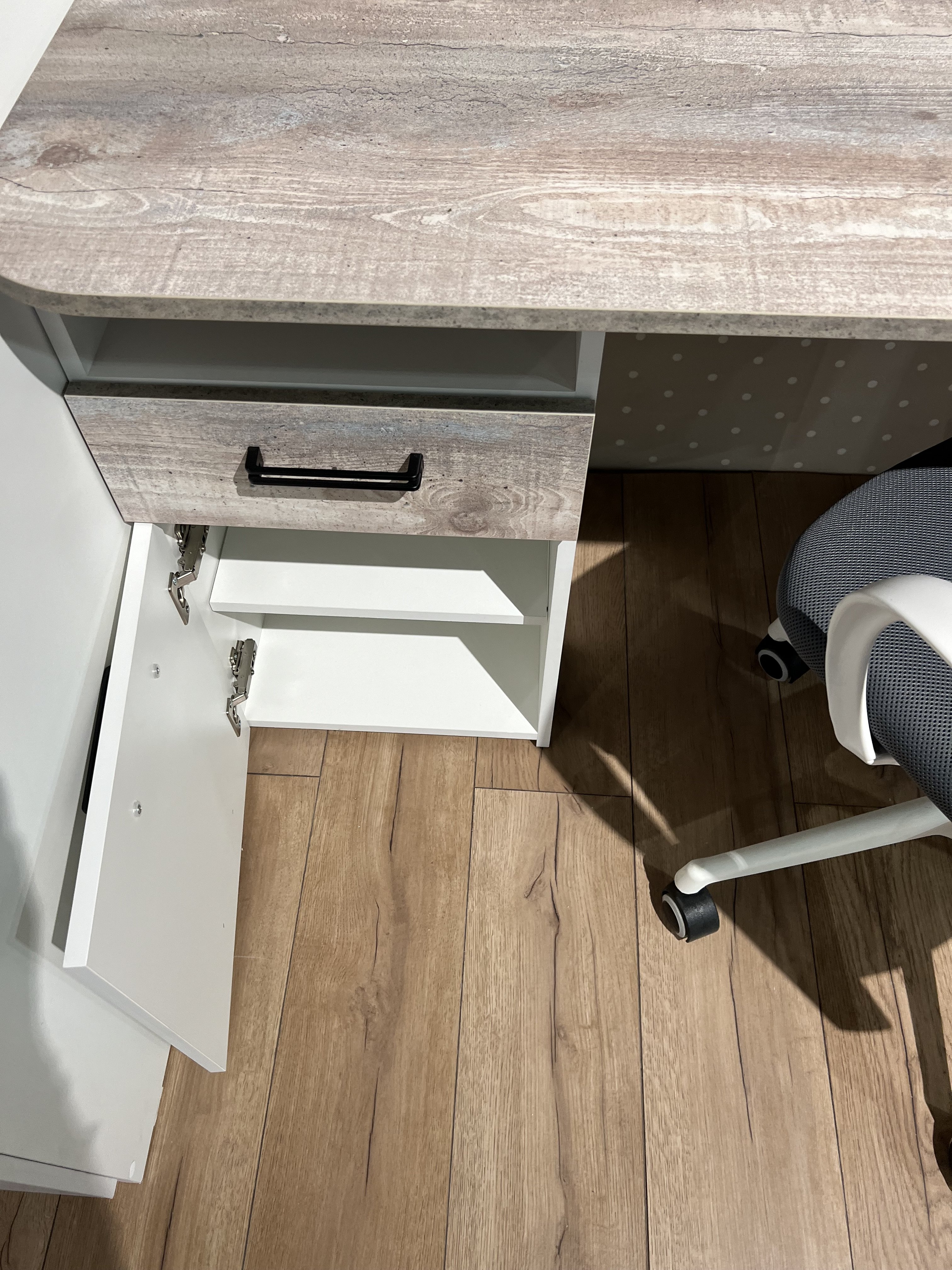 На дверке стола также установлены петли с доводчиками.