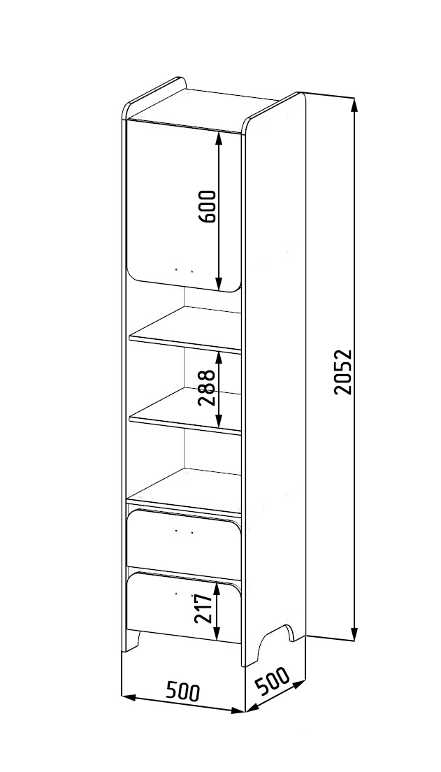 Габариты: ширина 500, глубина 500, высота 2060 мм