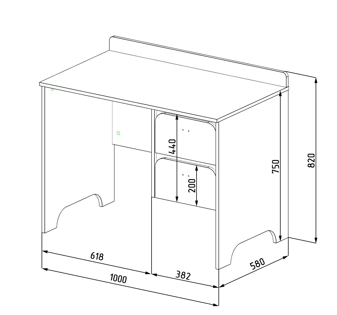 Габариты стола: ширина 1000, глубина 580, высота 740 мм