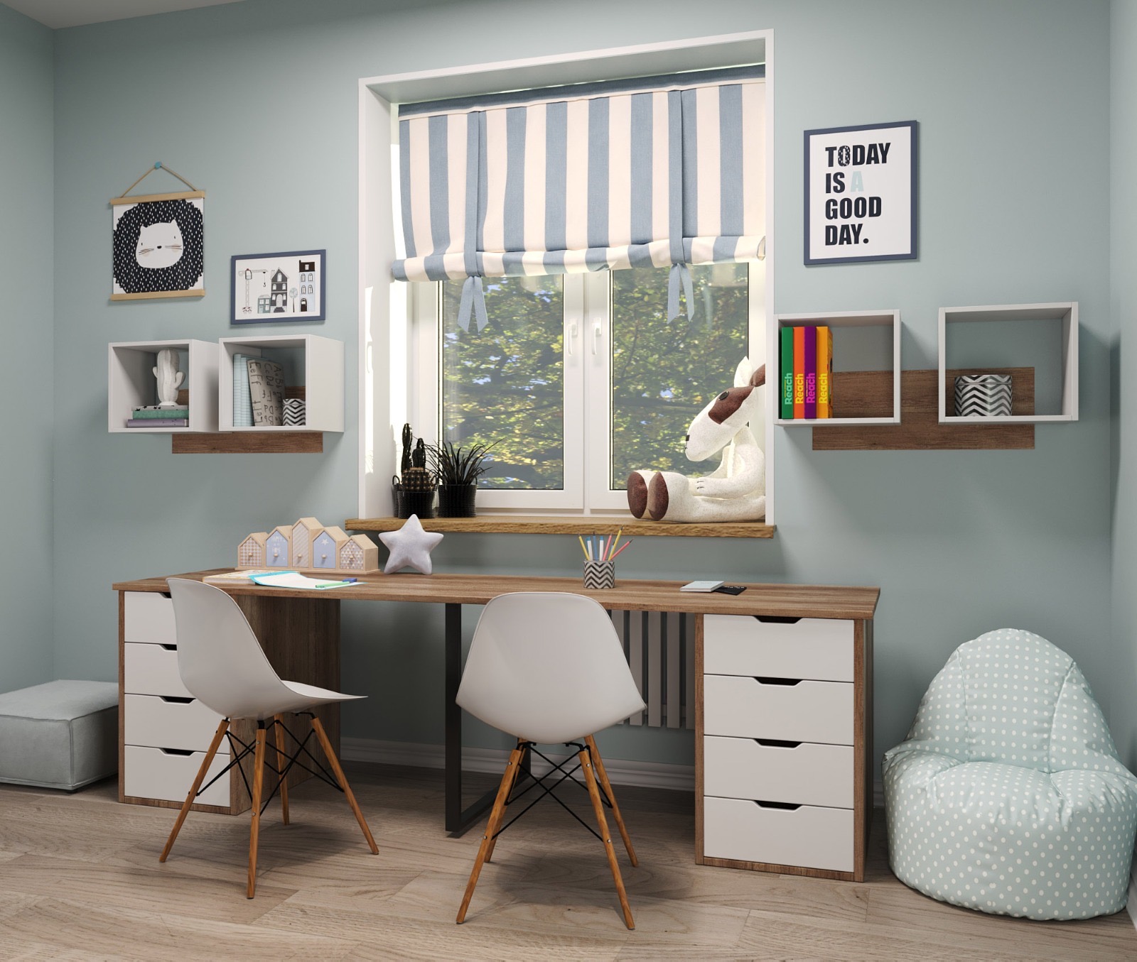 Комплект для 2 школьников: стол Дуэт 2200 мм + настенные полки Квадрат-2 (2 шт) от Династия Kids
