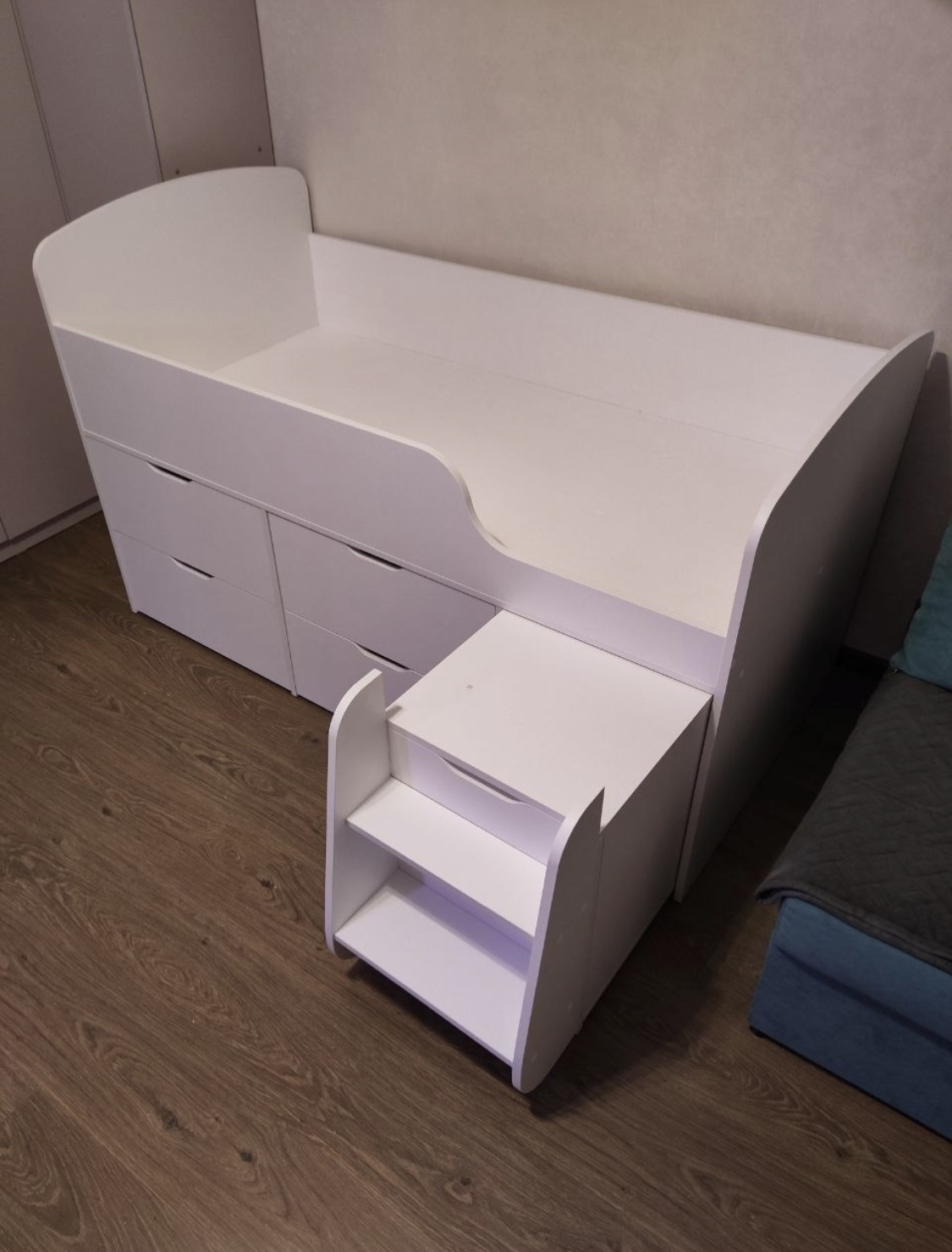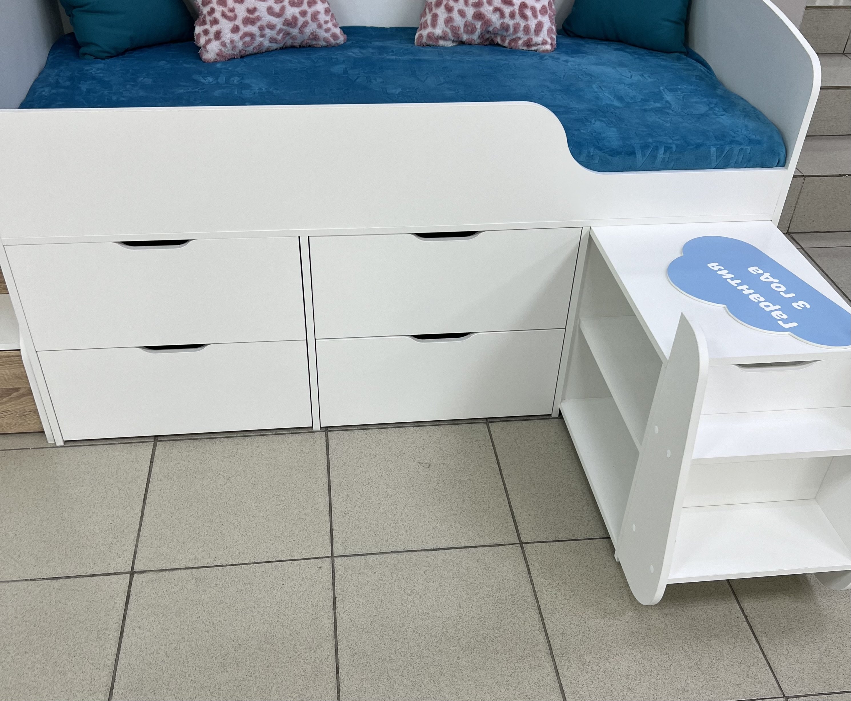 Четыре выдвижных ящика помогут ребенку хранить личные вещи и игрушки в собранном виде.