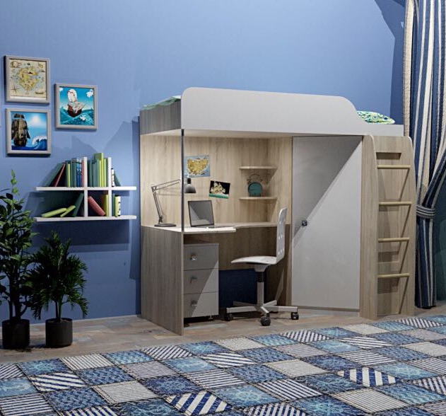 Основание кровати – прочный настил ЛДСП, который позволяет ребенку спать на ровной поверхности, что важно для детской спины. Прочное основание не скрипит и не сломается при играх. Отлично подходит как для пружинных, так и беспружинных матрасов.