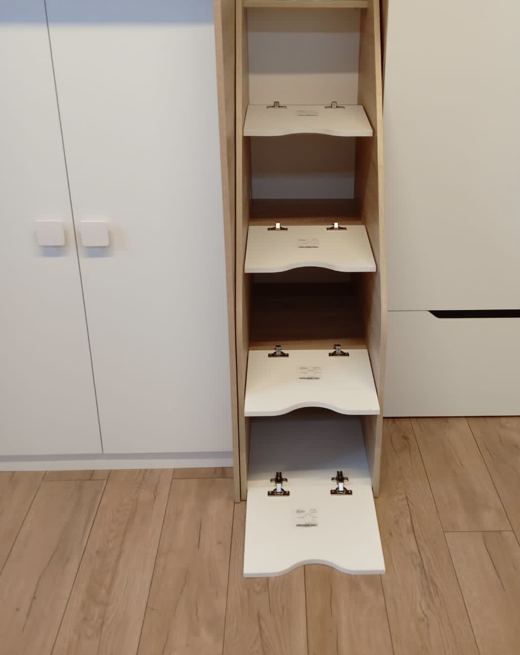 Устойчивая, прочная и безопасная лестница с ящиками для хранения.