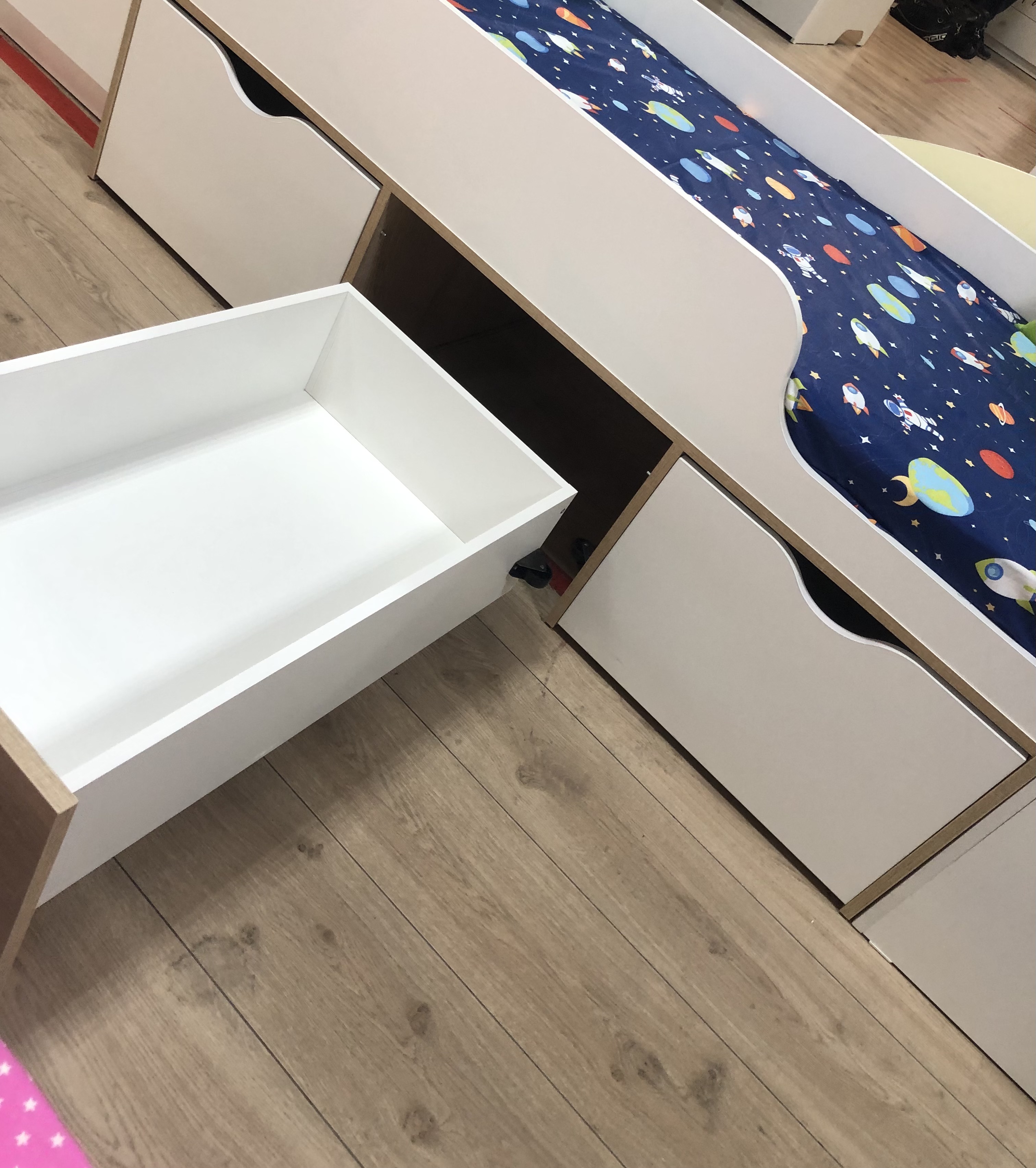 * Три вместительных выдвижных ящика помогут всегда хранить личные вещи и игрушки ребенка в собранном виде.