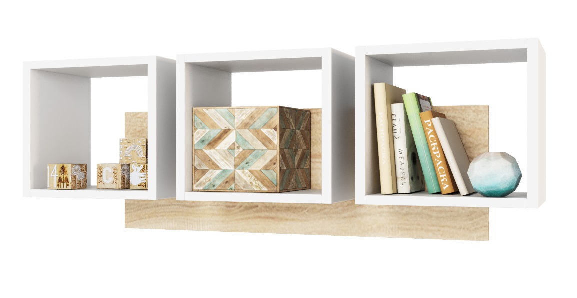Полка выполнена из сертифицированного, качественного, экологически чистого ЛДСП 16 мм класса Е0,5 в сочетании цветов дуб сонома + белый.