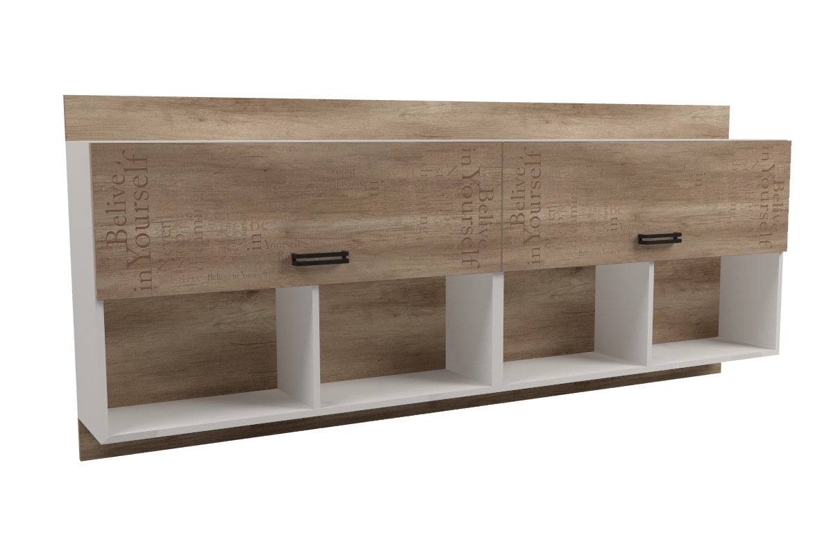 Мебель выполнена из качественного, экологически чистого ЛДСП Е0,5 в сочетании цветов "дуб каньон + белый" и оформлена принтом.