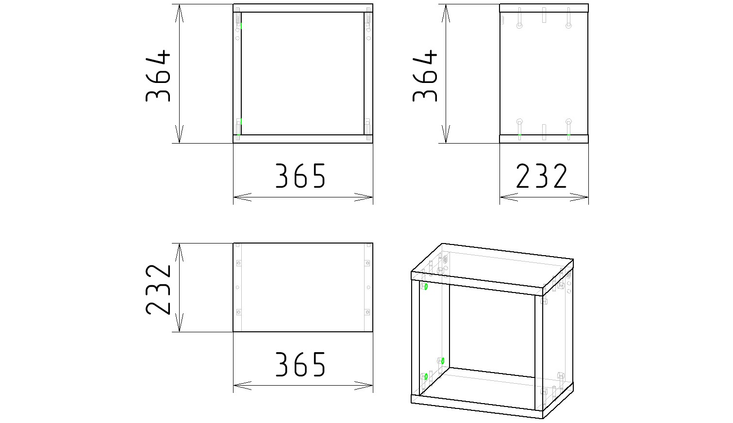 Габариты: ширина 365, глубина 232, высота 364 мм
