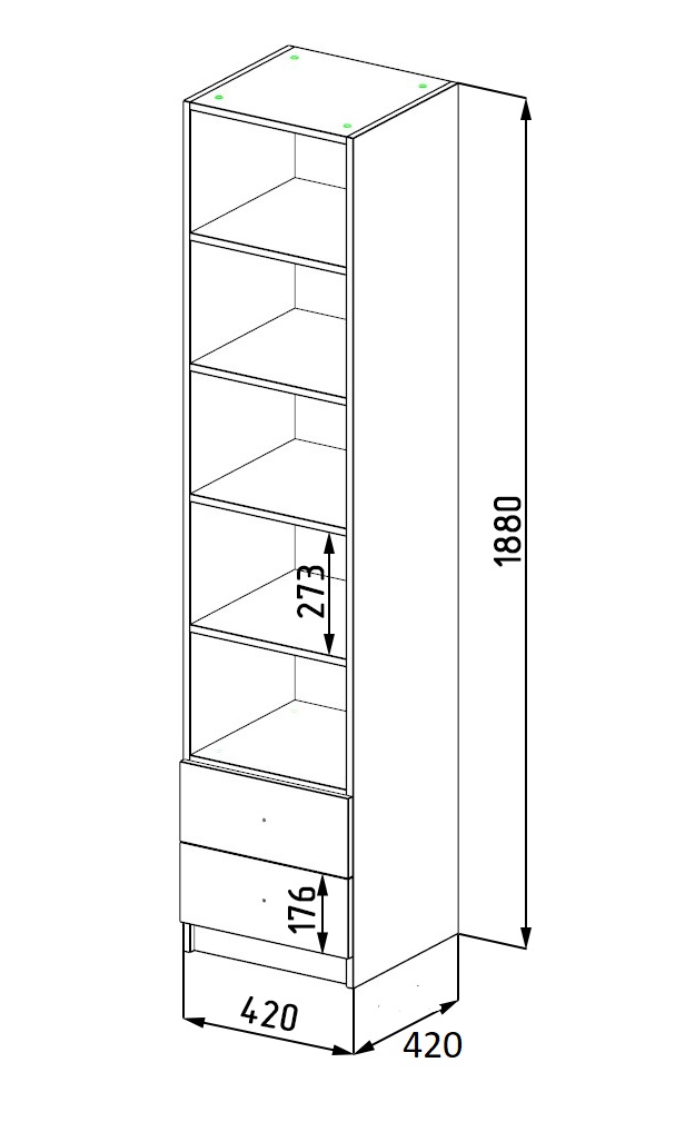 Габариты пенала: ширина 420 х высота 1880 х глубина 420 мм