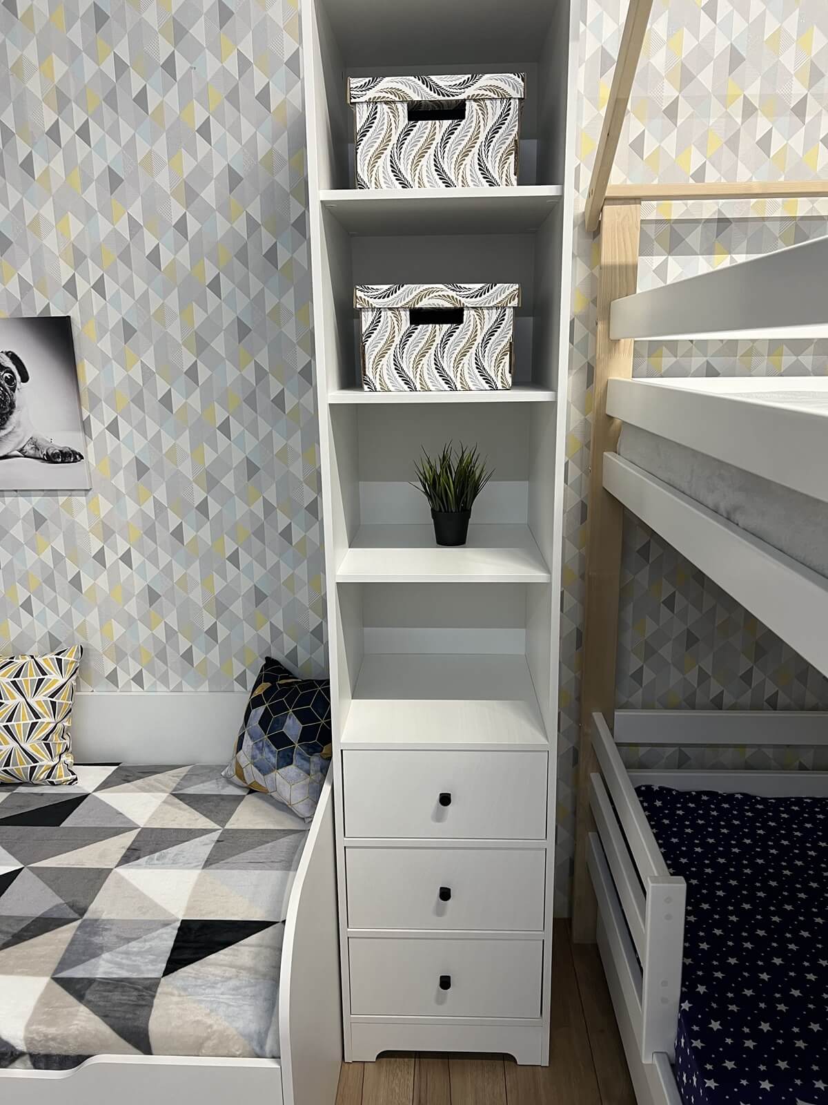 В пенал встроены три выдвижных ящика на направляющих скрытого монтажа с ДОВОДЧИКАМИ.