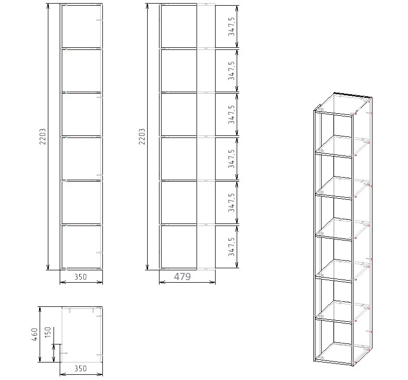 Габариты приставки: ширина 350 х высота 2203 х глубина 479 мм